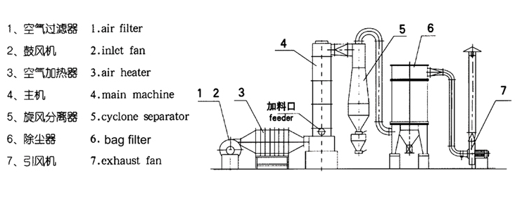 1.由于物料受到離心、剪切、碰撞、磨擦而被微?;矢叨确稚顟B,且氣固兩相間的相對速度較大,強化了傳質傳熱,使該機干燥強度高。