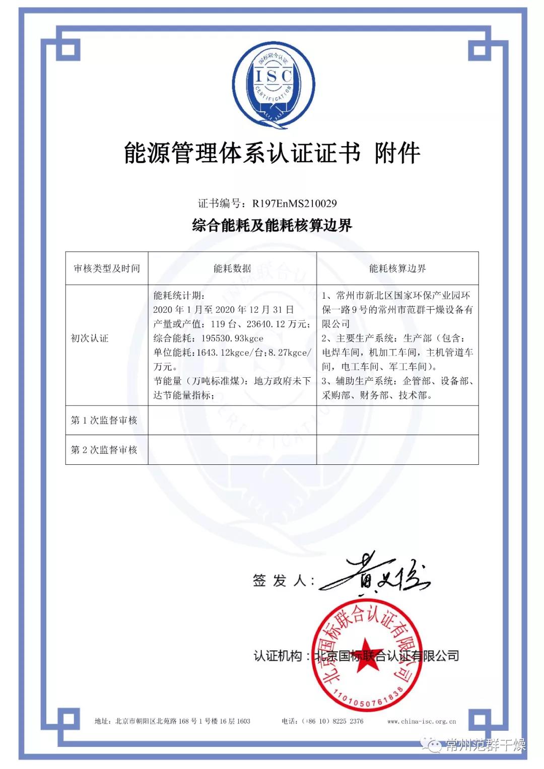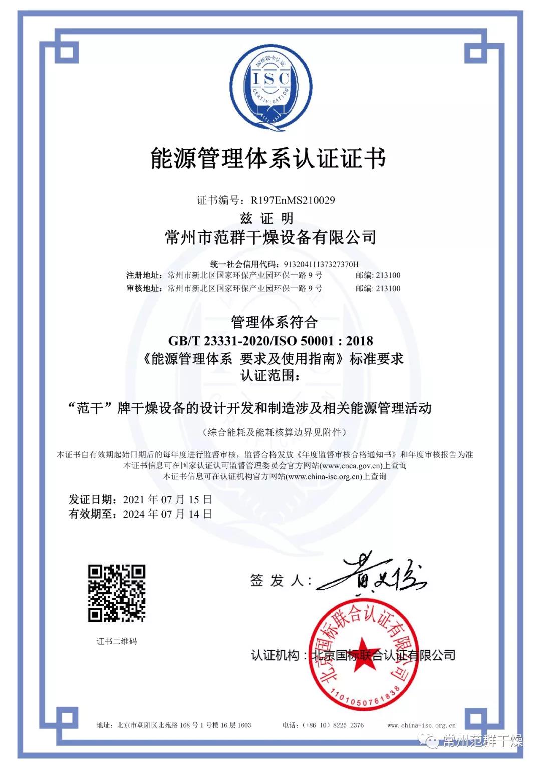 常州范群榮獲“能源管理體系認(rèn)證證書”