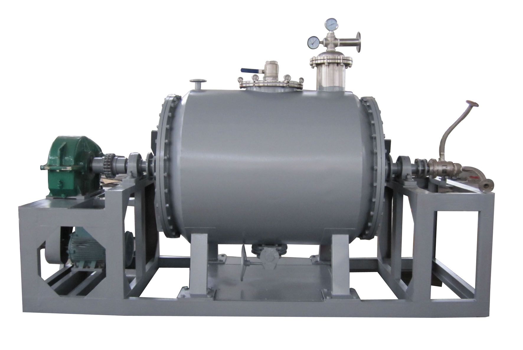 在雙錐真空干燥機(jī)材料由原則或真空的應(yīng)用中干燥。水沸騰在較低的溫度時,壓力是通過創(chuàng)建真空降低。所以水的蒸發(fā)發(fā)生得更快。真空干燥設(shè)備的結(jié)構(gòu)是由與鑄鐵重夾套容器其與立在夾套中的蒸汽壓力支架高真空壓力。它已封閉的空間,并分成20個空洞擱板部,它們的護(hù)套的一部分。這些貨架由于較大的表面積由貨架和金屬盤提供約45至50米平方被放置在貨架上,用于保持材料提供的熱傳導(dǎo)。烤箱門被鎖定緊緊得到氣密密封,并通過將冷凝器連接到一個真空泵。