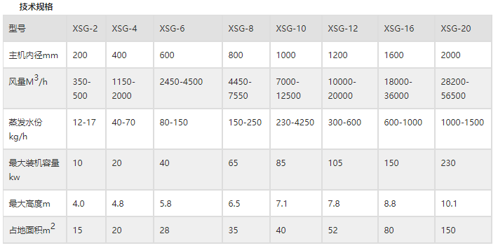 注:1.水分蒸發量是以進風溫度為1 80oC,出風溫度為80oC 時每小時蒸發的水份,